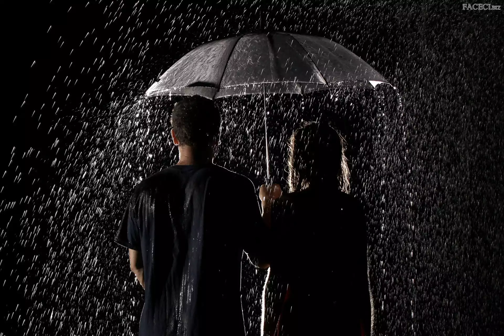 Deszcz, Noc, Ludzie, Parasol - faceci.biz